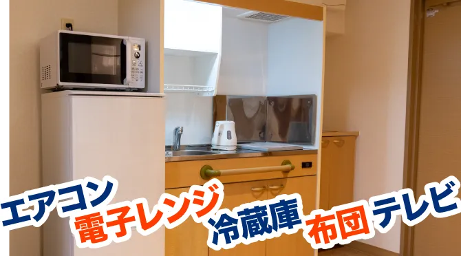 待機寮にはエアコンやテレビ、布団など、生活に必要な家具・家電を無料で完備しているので、カバン一つで入寮ができます。