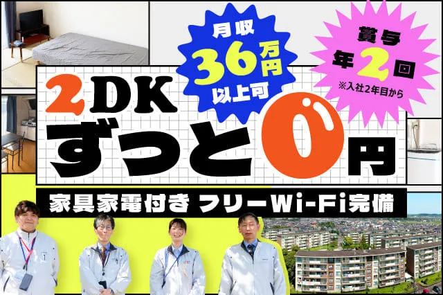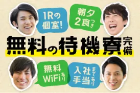 寮は、家具・家電付き、Wi-Fi完備、朝夕のご飯付き!入社前から完全無料でご利用いただけます。
