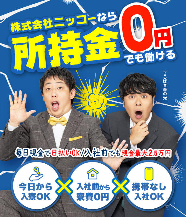 「日払い」は、働いた当日に現金をもらうことができます。金額は2,000円~4,000円となっており、就業先によってもらえる金額が変わります。株式会社ニッコーなら、現金は手渡しでもらえるので、手数料は不要。